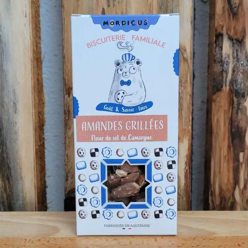 Liste des ingrédients : Amandes*, gomme végétale*, fleur de sel de Salies de Béarn.